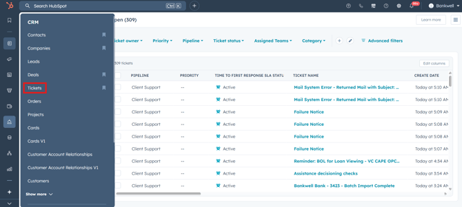 Navigate to your tickets (CRM > Tickets).
