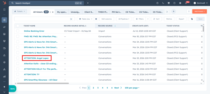 If you do not see it immediately, use the Search Tickets field and enter the name or ID of the record.